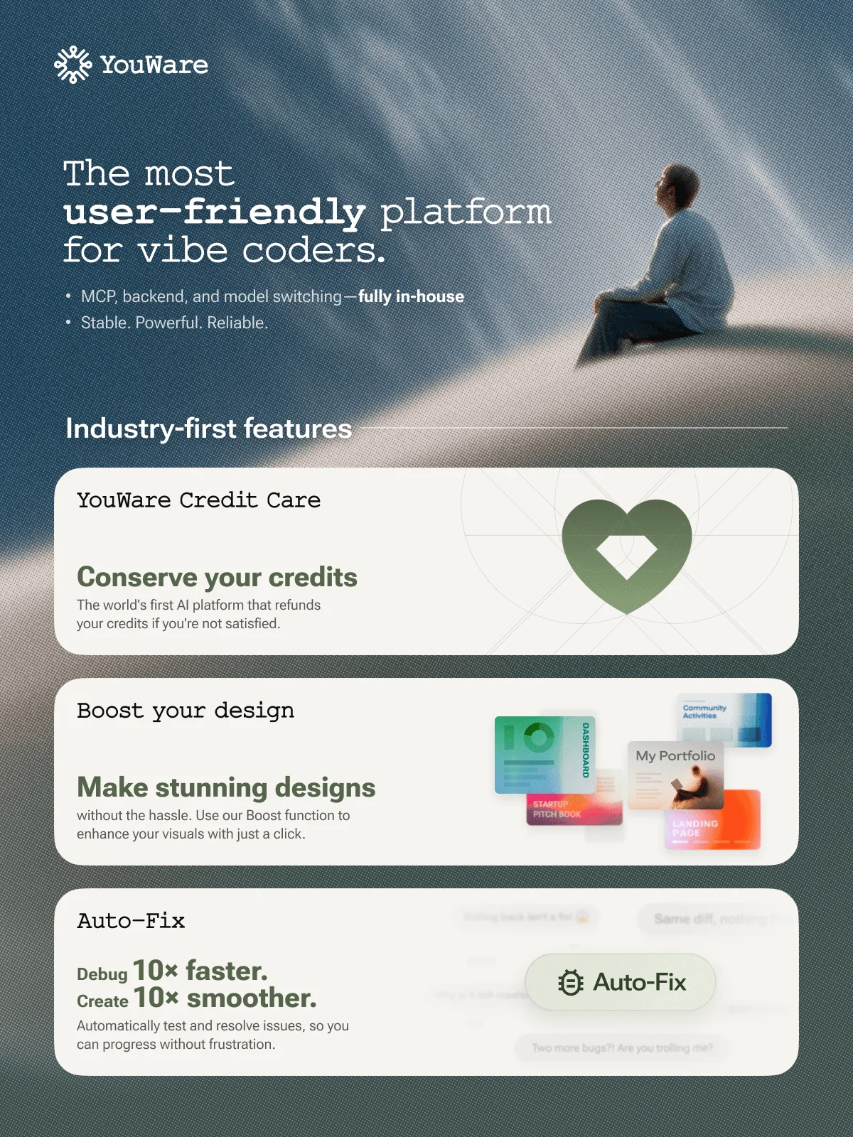 To achieve this, YouWare addresses two of the biggest hurdles in AI-assisted development: Backend Complexity and Context Awareness.